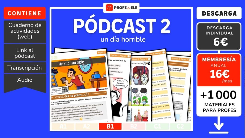 Vuelve a escuchar el podcast y escribe las palabras que faltan. ¡Atento al indefinido!