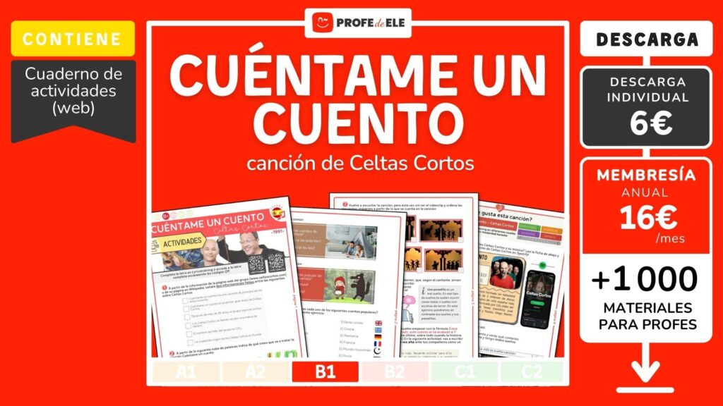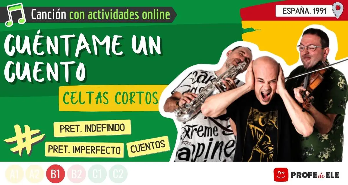 En esta actividad, te proponemos 12 ejercicios interactivos a través de los cuales buscaremos conocer más a fondo al grupo español Celtas Cortos, trabajar el contraste de pasados y la estructura general característica de los cuentos infantiles (la fórmula de inicio Érase una vez, la expresión Y colorín colorado, este cuento se ha acabado, etc).