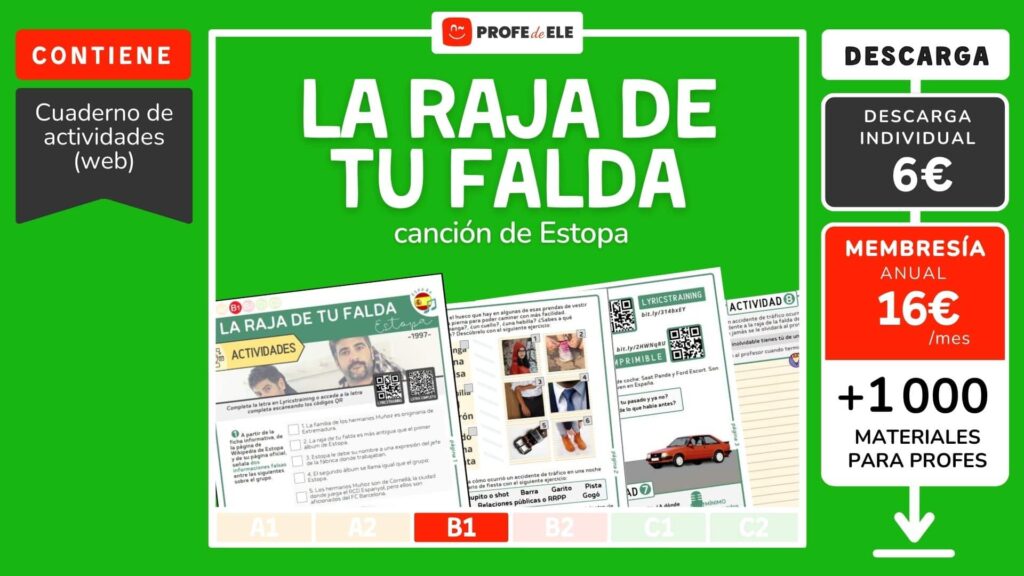 Ahora vas a escuchar la canción titulada La raja de tu falda de Estopa. En ella aparecerán verbos en pretérito indefinido y en imperfecto. Presta atención, completa esta actividad en Lyricstrainning y después vuelve a ProfeDeELE para seguir con el resto de actividades.