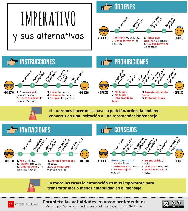 Transforma los tres elementos en un único imperativo. Puedes utilizar la ayuda para la primera oración.