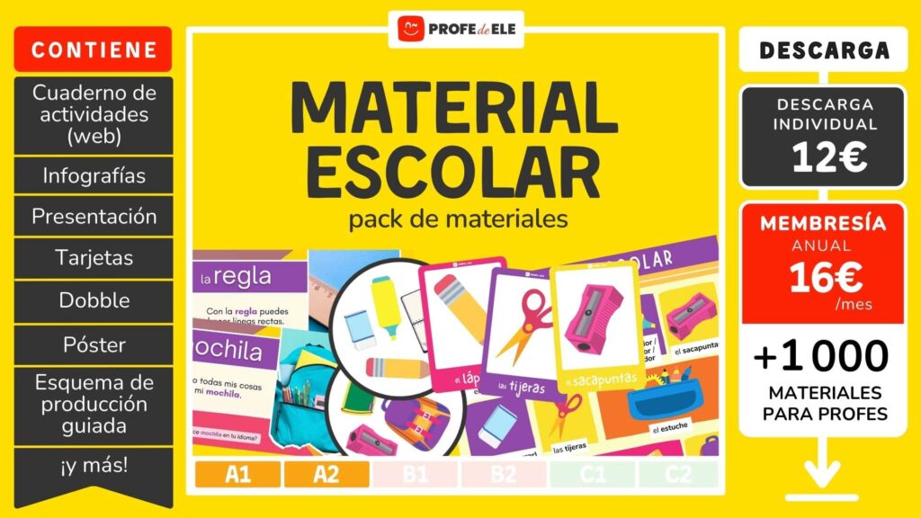 Si te interesan los recursos complementarios de esta secuencia didáctica, los puedes conseguir pagando una pequeña cantidad (ver final de esta página) o puedes suscribirte a una de nuestras membresías y acceder a todos nuestros materiales de español.