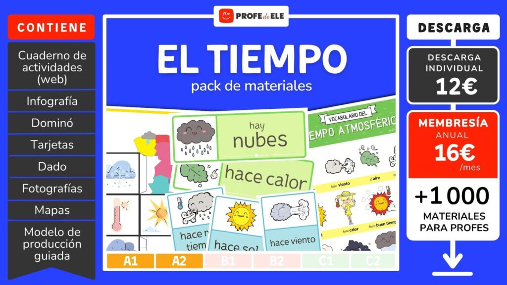 Si te interesan los recursos complementarios de esta secuencia didáctica, los puedes conseguir pagando una pequeña cantidad (ver final de esta página) o puedes suscribirte a una de nuestras membresías y acceder a todos nuestros materiales de español.