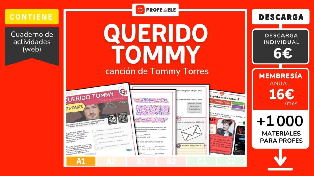 Ahora vas a escuchar la canción titulada Querido Tommy de Tommy Torres. Presta atención, completa esta actividad en Lyricstrainning y después vuelve a ProfeDeELE para seguir c...